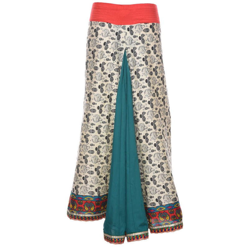 A-line maxi skirt comes in multi-colour with pleating and contrasting trim.Waist: 34 inchHips: 41 inchLength: 40 inch