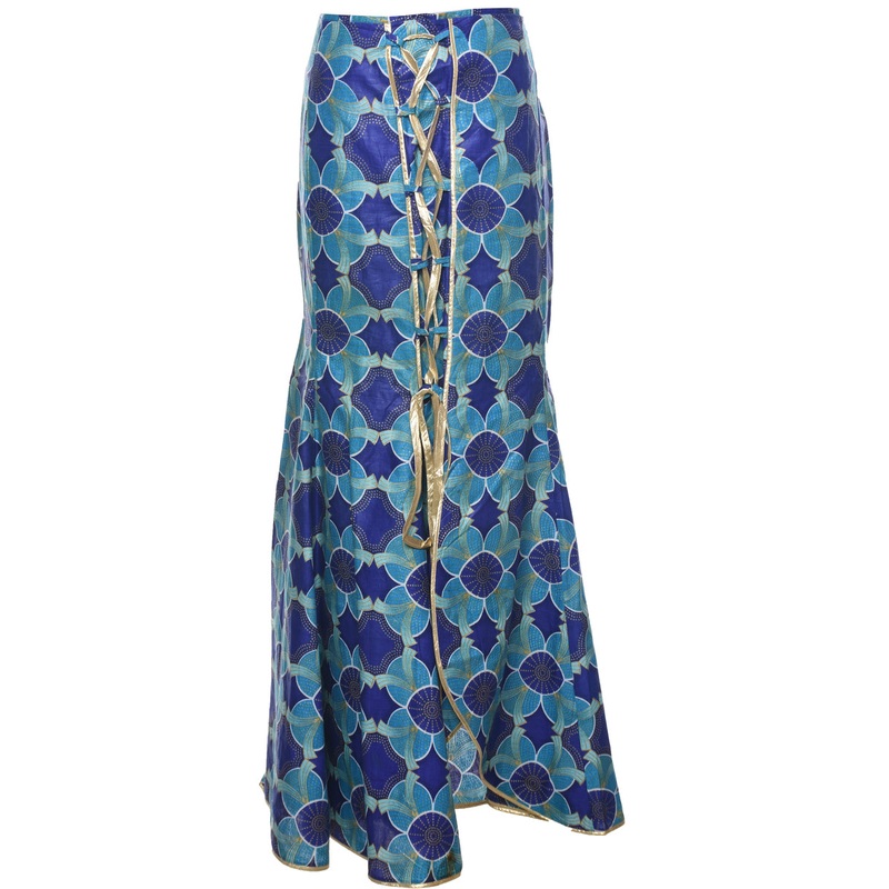 Abstract print maxi skirt comes in multi-colour with a fishtail hem.Waist: 32 inchHips: 40 inchLength: 45 inch