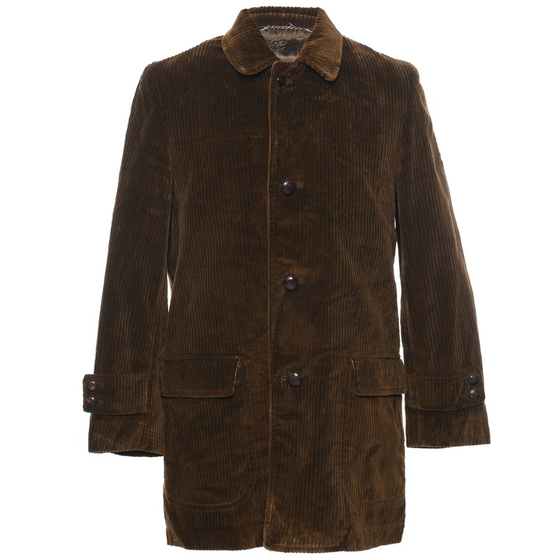 London Fog corduroy coat in dark brown with faux fur lining and pockets.