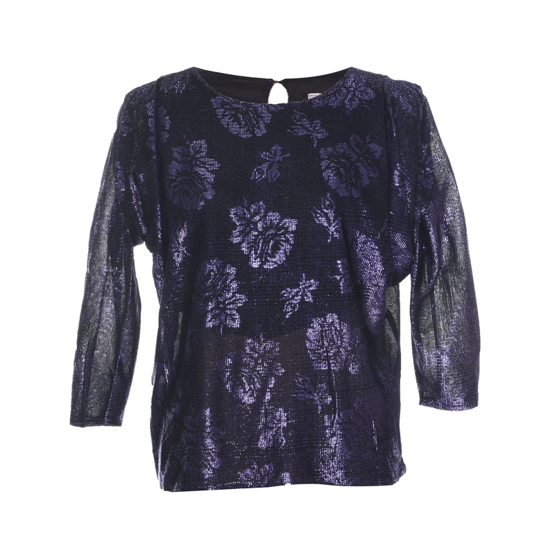 Lurex evening top. Comes in purple with removable shoulder pads.Sleeve Length: 19 inchBust: 40 inchLength: 24 inch