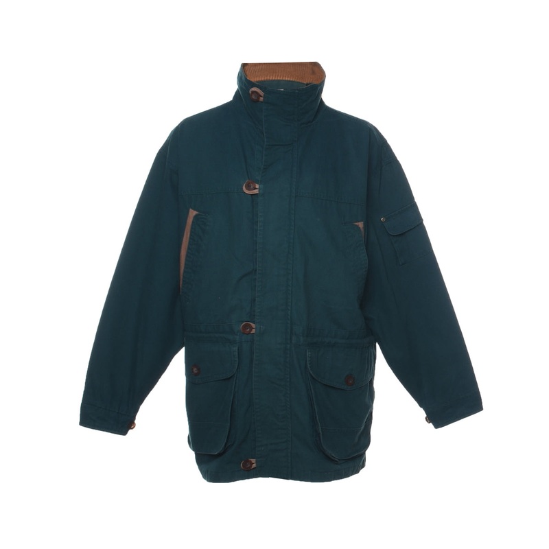 Zip front green jacket with multiple pockets.Sleeve Length: 25 inchBust: 53 inchLength: 33 inch
