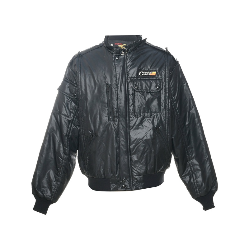 Zip front harrington jacket in black with epaulettes and multiple pockets.Sleeve Length: 29 inchBust: 52 inchLength: 25 inch